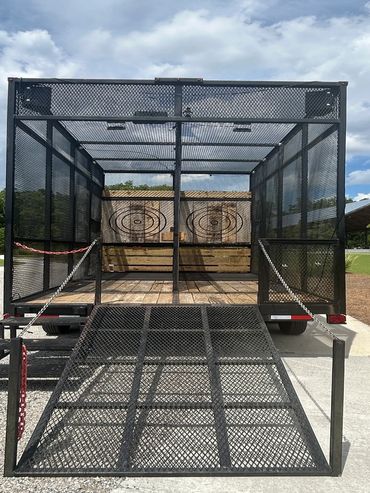 Southern Hatchets Mobile Trailer; Adults 2 axe-throwing lanes with safety cages and rubber matting